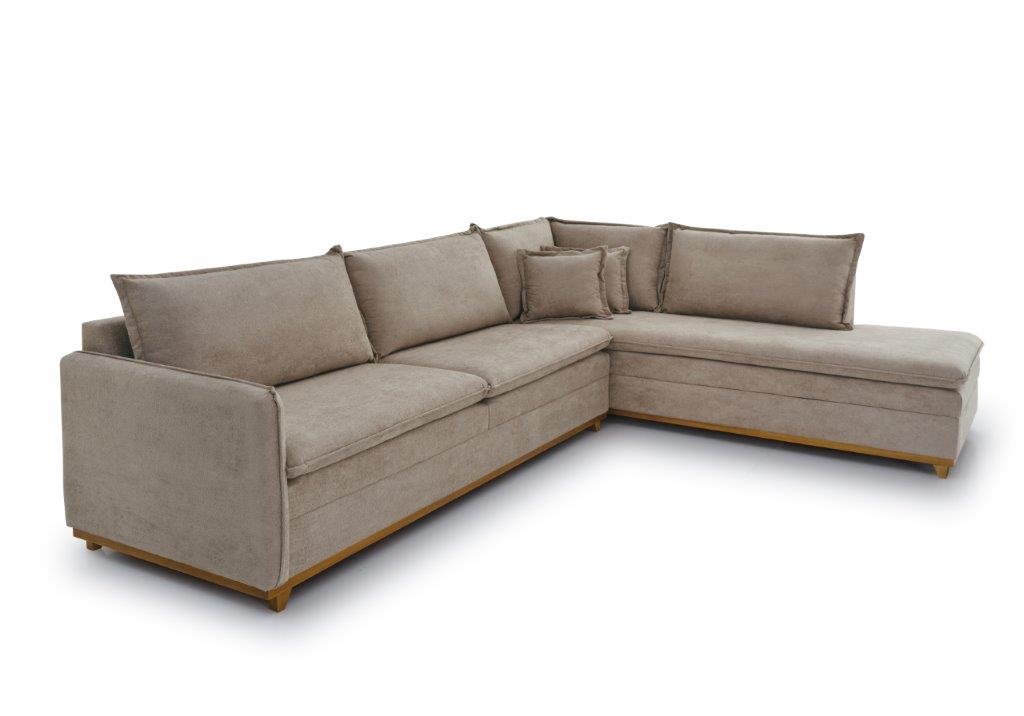 Largura: 290/225cm Altura: 95cm Profundidade: 85cm Sofá de canto Braço 10cm Almofadas soltas com fibra 100% poliéster Assentos com pillow e percinta elástica Molas em espiral e espuma D30