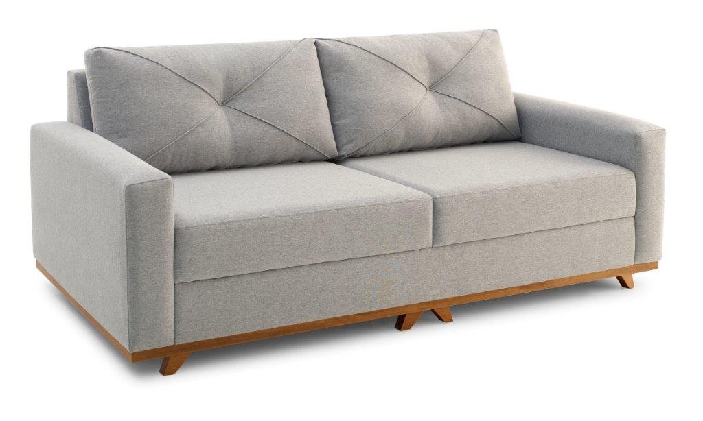 Largura: 225cm Altura: 95cm Profundidade: 85cm Sofá living Braço 15cm Almofadas soltas com fibra 100% poliéster Assentos com percinta elástica Molas em espiral e espuma D30
